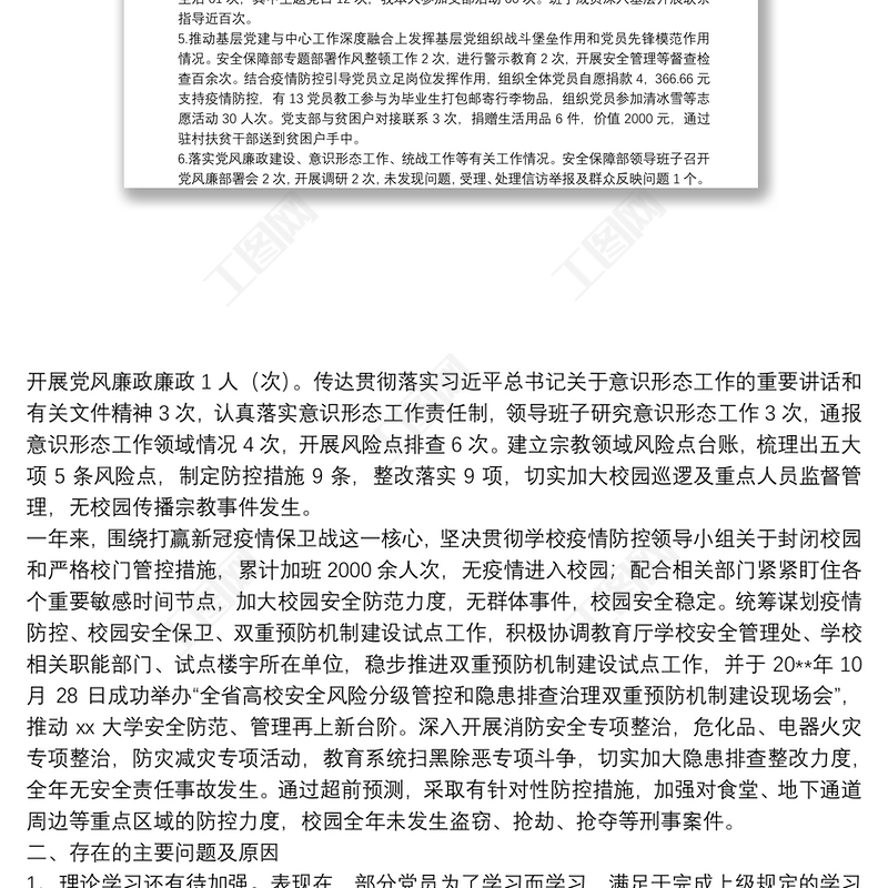 工圖網(wǎng)提供某高校機(jī)關(guān)黨委安全保障部黨支部書記述職報告供會員免費(fèi)下載。更多精彩黨課PPT素材,盡在工圖網(wǎng)。