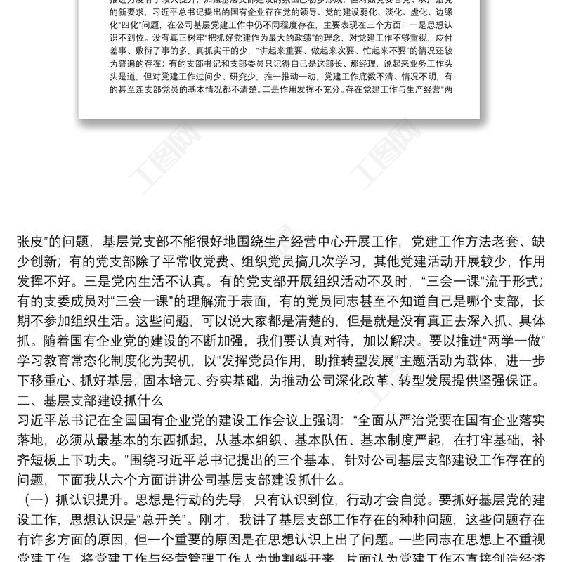 工圖網(wǎng)提供基層黨支部建設(shè)講稿(范文)下載供會員免費下載。更多精彩黨課PPT素材,盡在工圖網(wǎng)。