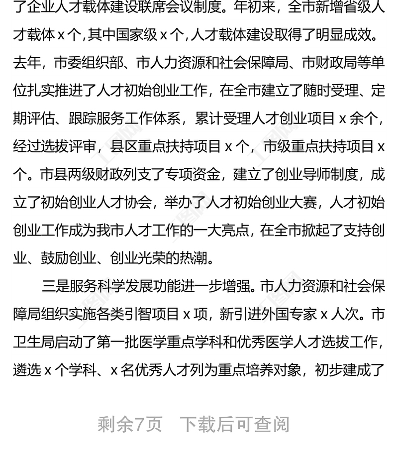 在全市人才工作領(lǐng)導(dǎo)小組成員單位述職報(bào)告會(huì)上的講話