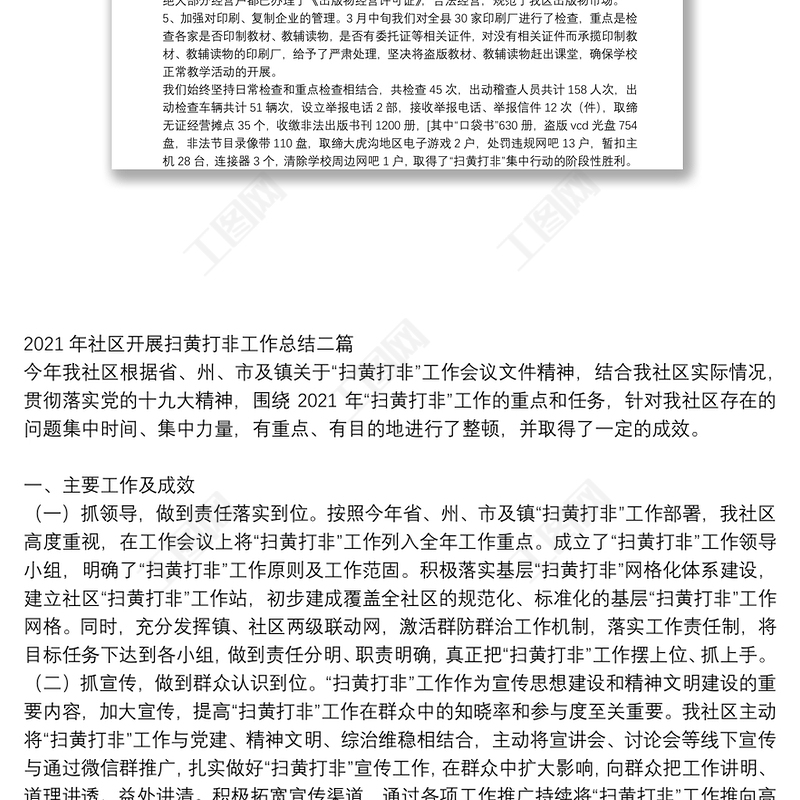 工圖網(wǎng)提供2021年社區(qū)開(kāi)展掃黃打非工作總結(jié)三篇供會(huì)員免費(fèi)下載。更多精彩黨課PPT素材,盡在工圖網(wǎng)。