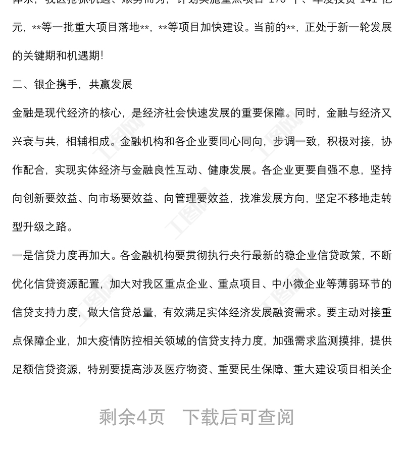 工圖網(wǎng)提供在2022年全區(qū)政銀企融資對接會議上的講話供會員免費下載。更多精彩黨課PPT素材,盡在工圖網(wǎng)。