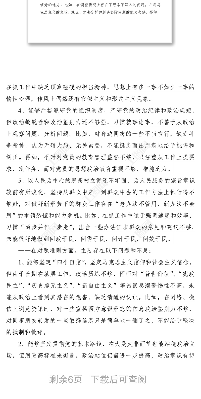 主題教育檢視材料(存在問題、剖析原因和整改措施)包含