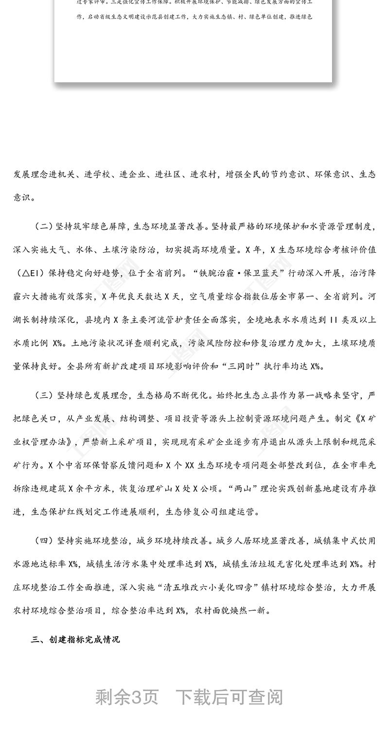 X縣生態(tài)文明建設(shè)示范縣創(chuàng)建工作匯報(bào)材料