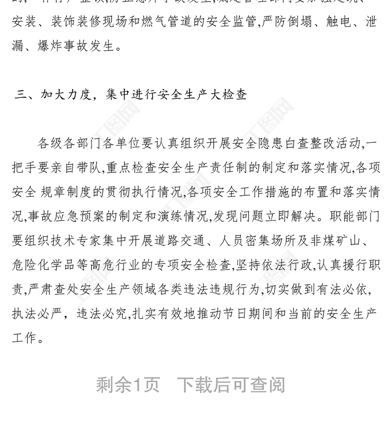 2021最新安全生產(chǎn)法全文免費(fèi)下載2021版《安全生產(chǎn)法》全文2021年醫(yī)院安全生產(chǎn)專項(xiàng)整治三年行動(dòng)工作匯報(bào)2021河北省安全生產(chǎn)專項(xiàng)整治三年行動(dòng)工作方案關(guān)于召開2022年度組織生活會(huì)的通知和開展民主評(píng)議黨員的通知引言2021江蘇省深化安全生產(chǎn)風(fēng)險(xiǎn)隱患雙重預(yù)防體系建設(shè)行動(dòng)方案2022關(guān)于做好國(guó)家安全人民防線建設(shè)自查的報(bào)告2021安全生產(chǎn)專題組織生活會(huì)材料2021組織生活會(huì)個(gè)人剖析材料安全生產(chǎn)2021建黨一百周年安全維穩(wěn)工作總結(jié)2022在自治區(qū)防災(zāi)減災(zāi)救災(zāi)安全生產(chǎn)暨消防安全工作電視電話會(huì)議上的講話學(xué)習(xí)2022國(guó)慶節(jié)前安全生產(chǎn)工作講話2022醫(yī)院安全生產(chǎn)三年行動(dòng)工作第二季度匯報(bào)2023黨建安全生產(chǎn)工作亮點(diǎn)總結(jié)2023安全生產(chǎn)工作主題教育個(gè)人對(duì)照檢查