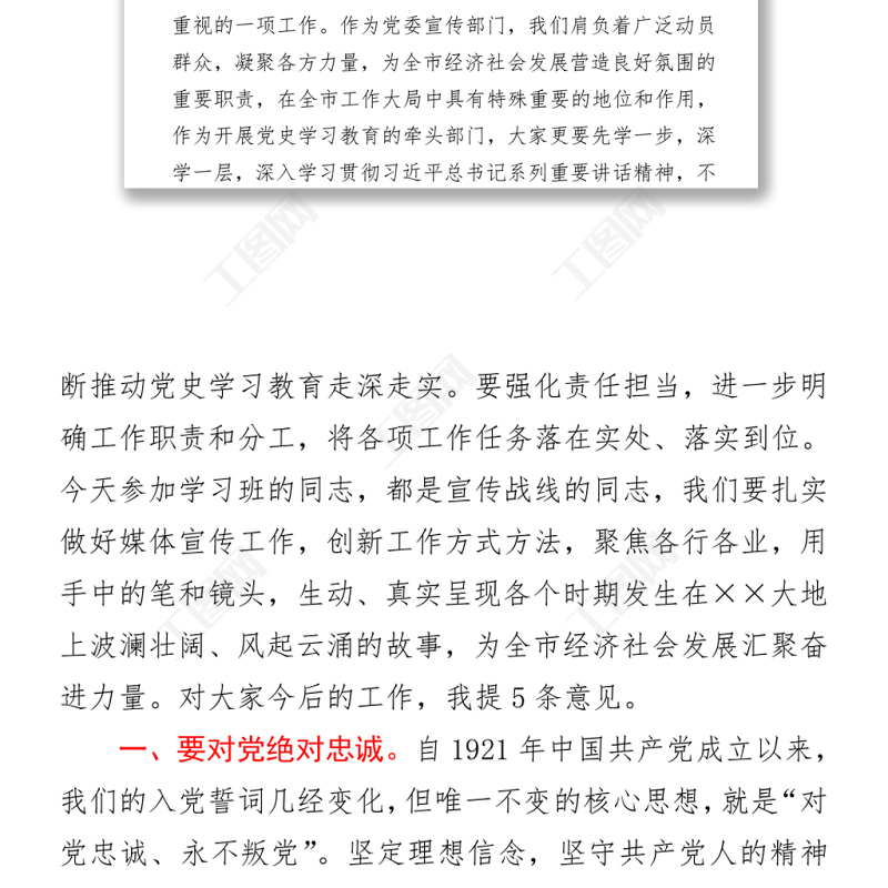 工圖網(wǎng)提供2021全市宣傳系統(tǒng)黨史學(xué)習(xí)教育Word下載供會(huì)員免費(fèi)下載。更多精彩黨課PPT素材,盡在工圖網(wǎng)。