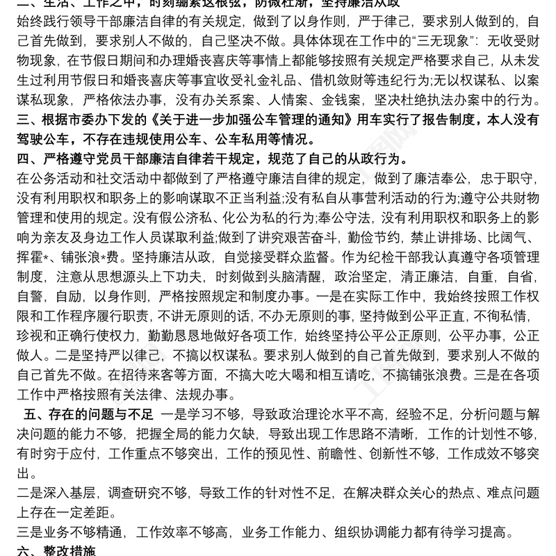 廉潔自律 廉潔自律個人總結大全包含