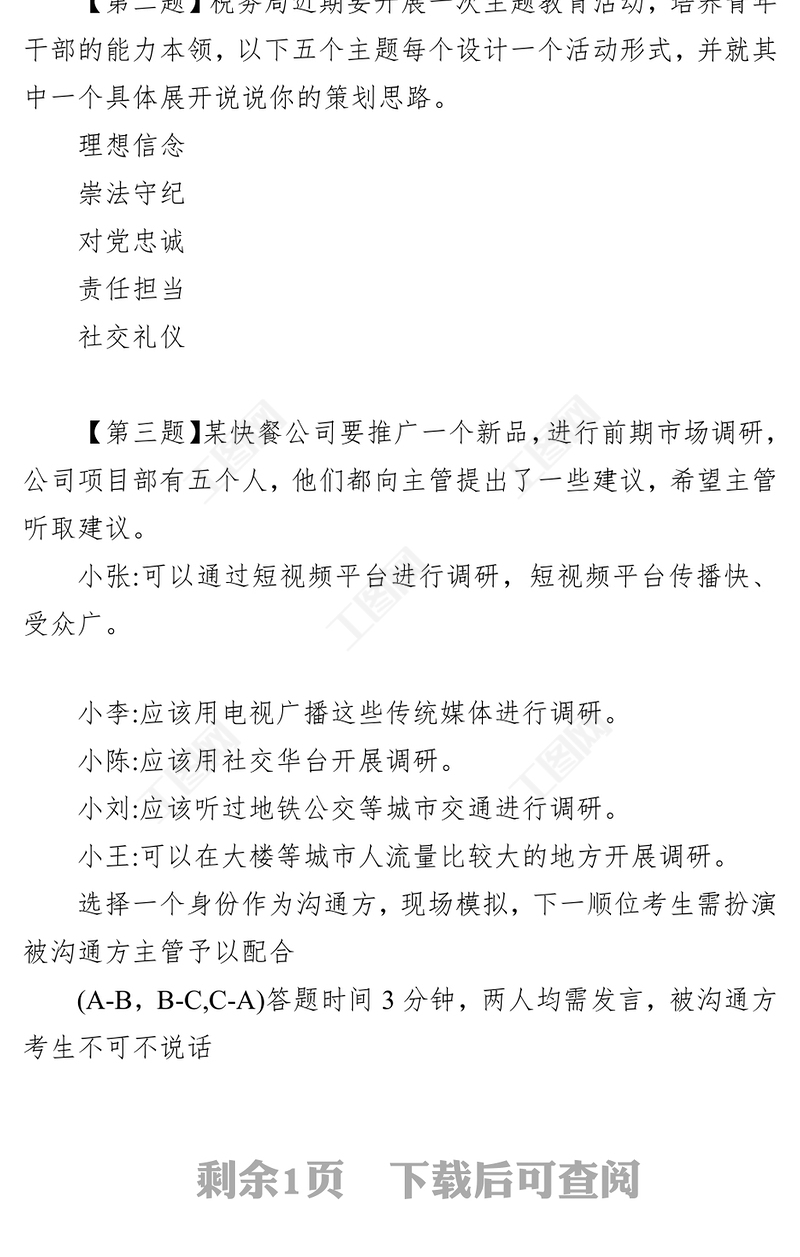 工圖網(wǎng)提供2024年3月5日國家公務員稅務系統(tǒng)面試題供會員免費下載。更多精彩黨課PPT素材,盡在工圖網(wǎng)。