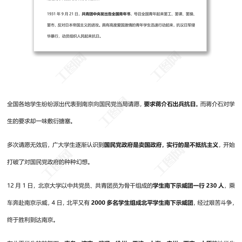 工圖網(wǎng)提供【慶祝建團(tuán)百年·100個團(tuán)史故事33】 北平學(xué)生南下示威團(tuán)和珍珠橋慘案供會員免費下載。更多精彩黨課PPT素材,盡在工圖網(wǎng)。