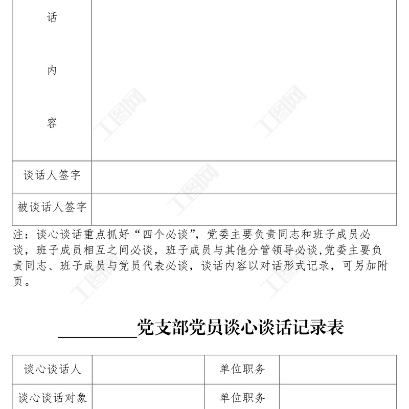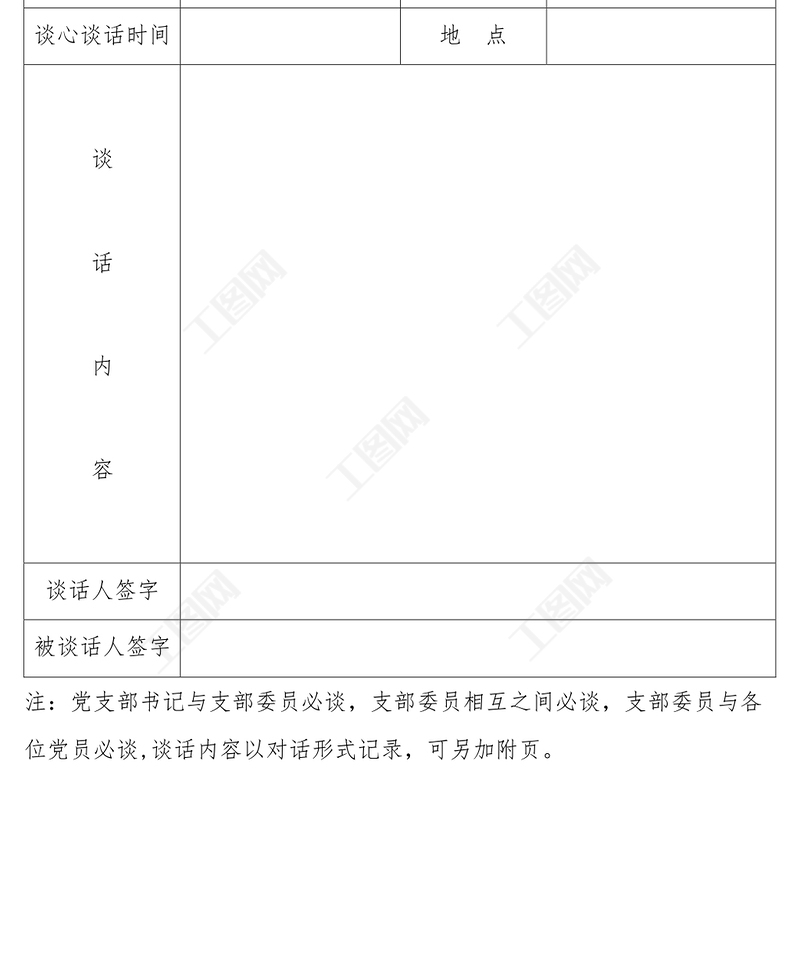 工圖網(wǎng)提供寫作材料談心談話記錄表供會員免費(fèi)下載。更多精彩黨課PPT素材,盡在工圖網(wǎng)。