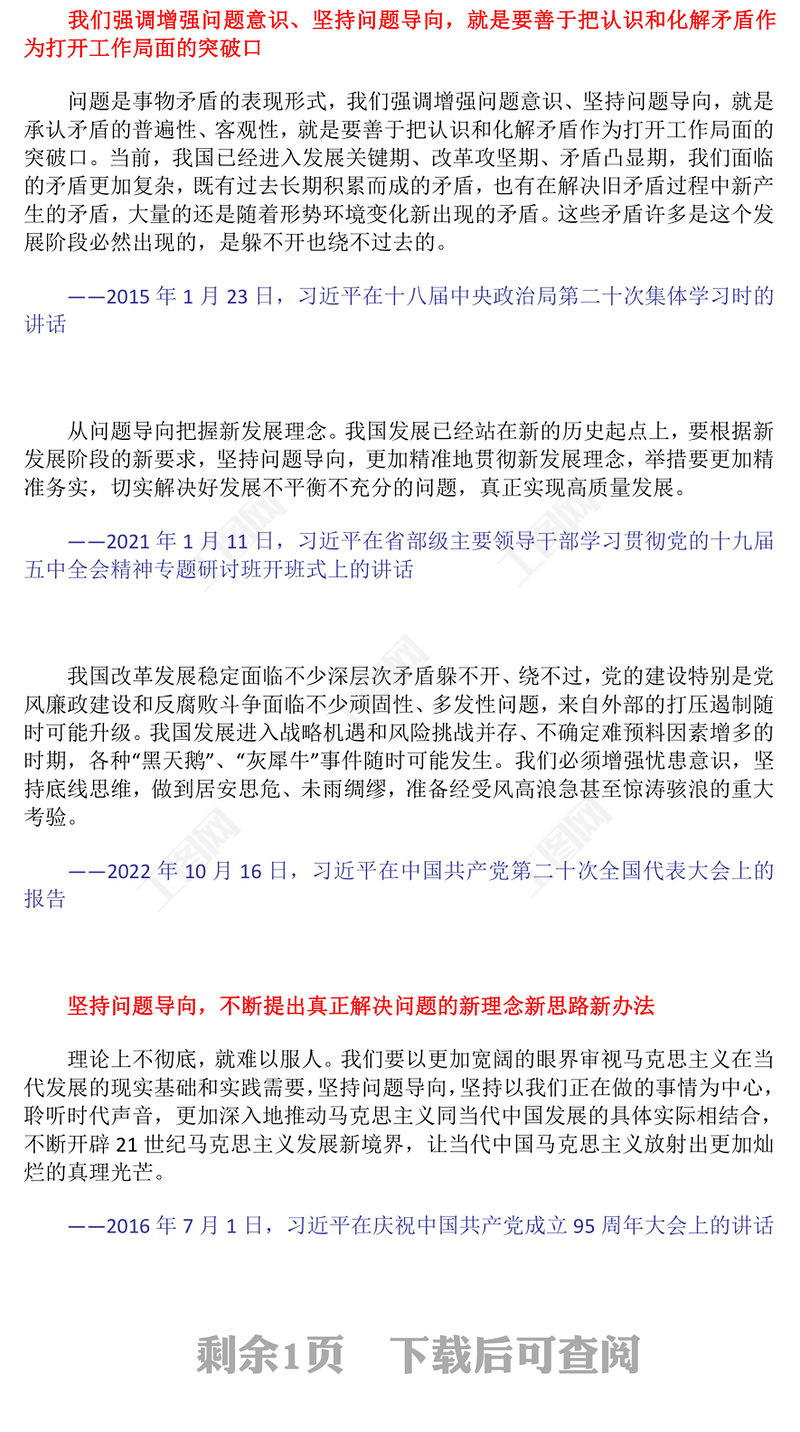 > 黨課講稿 > 2022堅(jiān)持問題導(dǎo)向PPT簡潔黨建風(fēng)樹立問題意識堅(jiān)持問題導(dǎo)向黨員干部培訓(xùn)輔導(dǎo)專題黨課課件(講稿).DOCX 【圖片、文字、動畫均可編輯】