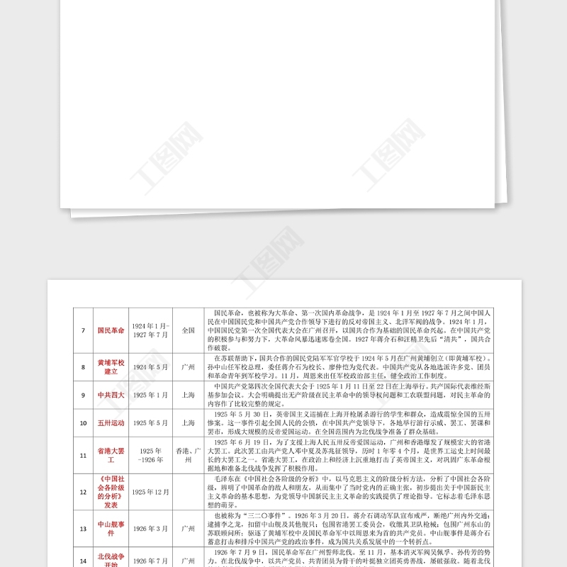 工圖網提供黨史表格61件大事記簡表表格1919年1949年黨史學習教育素材供會員免費下載。更多精彩黨課PPT素材,盡在工圖網。