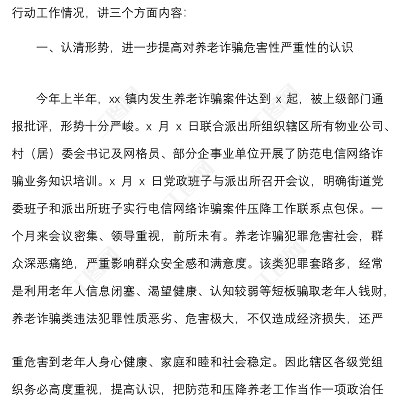 工圖網(wǎng)提供在鄉(xiāng)鎮(zhèn)打擊整治養(yǎng)老詐騙專項行動工作會議上的講話范文供會員免費下載。更多精彩黨課PPT素材,盡在工圖網(wǎng)。