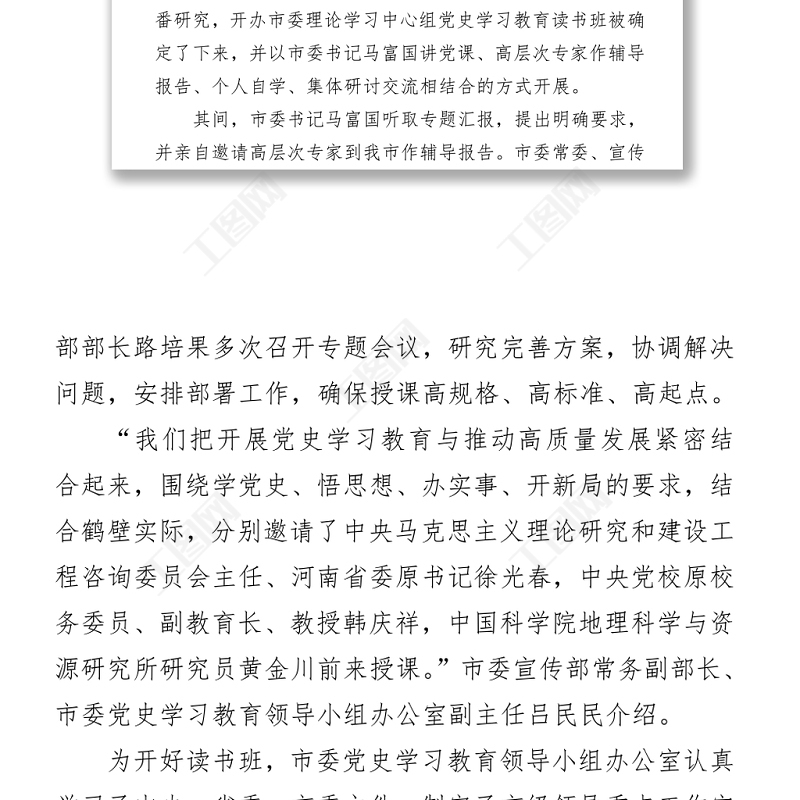 > 黨政機(jī)關(guān) > 市委理論學(xué)習(xí)中心組黨史學(xué)習(xí)教育讀書班活動(dòng)綜述.DOCX 【圖片、文字、動(dòng)畫均可編輯】