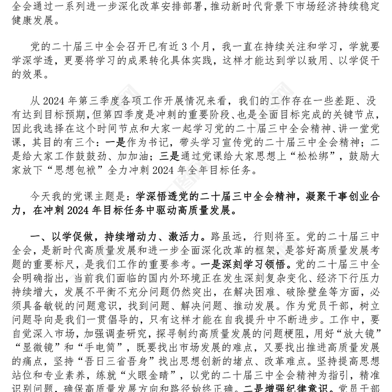 首頁 > WORD文檔 > 【學(xué)習(xí)貫徹黨的二十屆三中全會精神】黨課稿子(適用黨政、企業(yè)、學(xué)校、醫(yī)院、銀行等黨委、支部書記).DOCX 【圖片、文字、動畫均可編輯】
