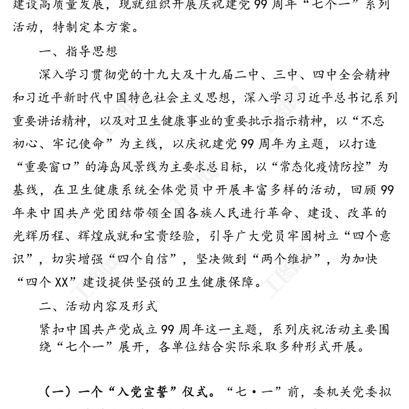 慶祝中國共產(chǎn)黨成立99周年“七個一”系列活動方案,中國共產(chǎn)黨,公文 Array