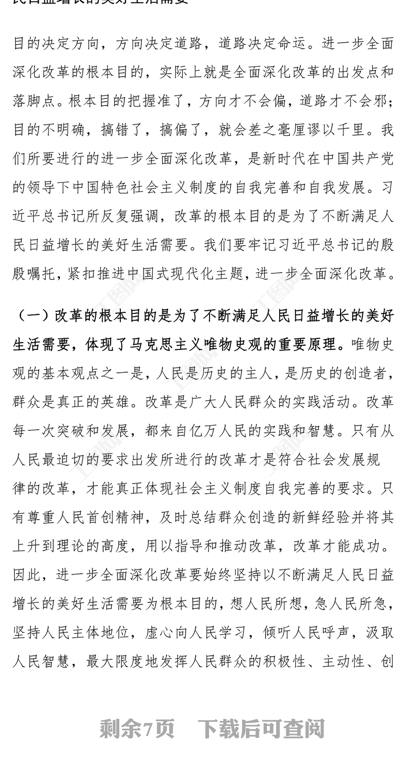 首頁 > WORD文檔 > 二十屆三中全會精神黨課:牢牢把握全面深化改革的根本目的,持之以恒把改革開放進行到底范文.DOCX 【圖片、文字、動畫均可編輯】