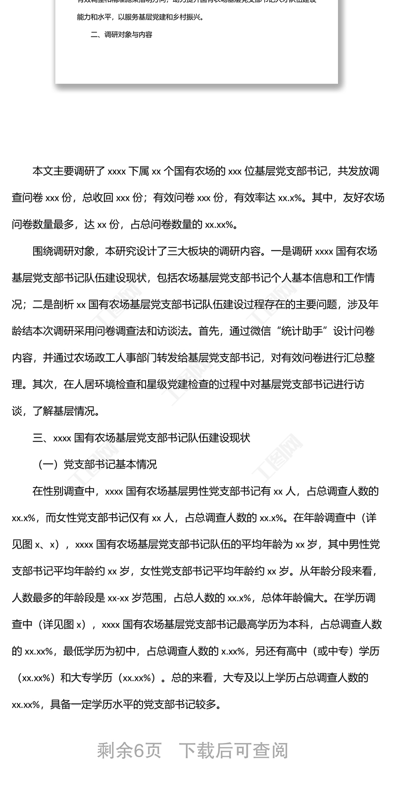 工圖網(wǎng)提供關(guān)于對(duì)基層黨支部書記隊(duì)伍建設(shè)現(xiàn)狀調(diào)研與對(duì)策分析(集團(tuán)公司—國有農(nóng)場)供會(huì)員免費(fèi)下載。更多精彩黨課PPT素材,盡在工圖網(wǎng)。