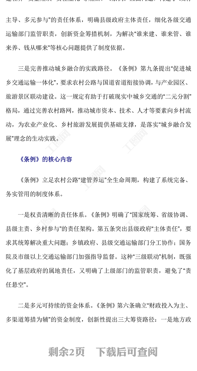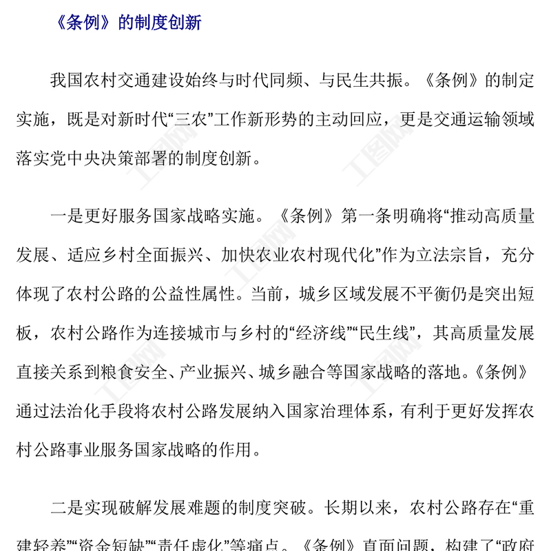 工圖網(wǎng)提供一文解讀《農(nóng)村公路條例》的制度創(chuàng)新和核心內(nèi)容PPT課件(講稿)供會員免費下載。更多精彩黨課PPT素材,盡在工圖網(wǎng)。