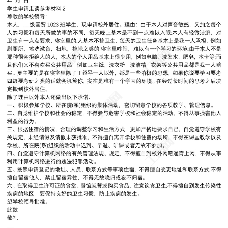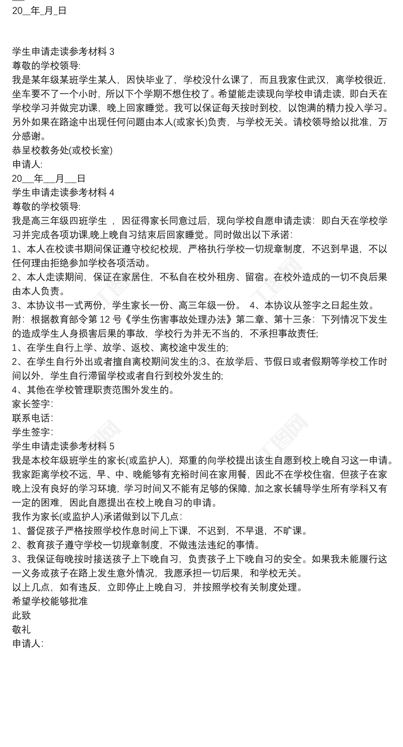 學(xué)生申請(qǐng)走讀參考材料 Array