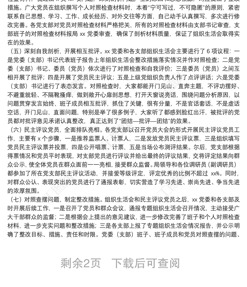 關(guān)于召開20**年黨組織生活會(huì)和開展民主評(píng)議黨員情況的報(bào)告