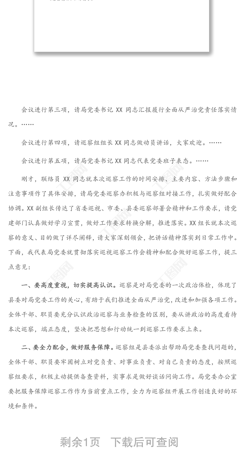 工圖網(wǎng)提供某單位巡察工作動(dòng)員會(huì)上的主持詞供會(huì)員免費(fèi)下載。更多精彩黨課PPT素材,盡在工圖網(wǎng)。