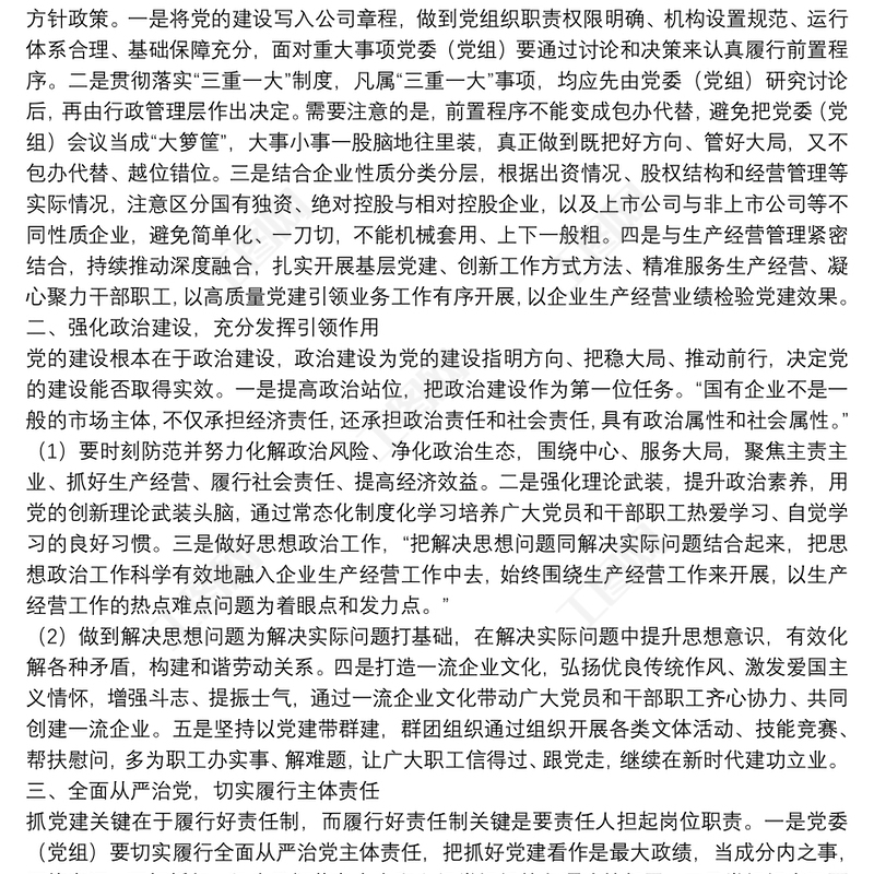 國(guó)有企業(yè)關(guān)于堅(jiān)持黨的領(lǐng)導(dǎo)、加強(qiáng)黨的建設(shè)進(jìn)展情況的報(bào)告包含