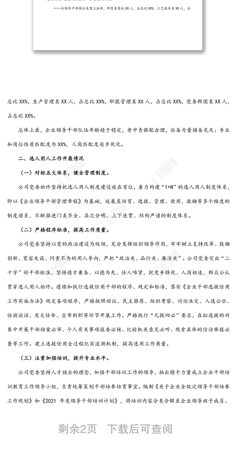 某國有企業(yè)2021年選人用人工作情況及2022年干部隊(duì)伍建設(shè)報(bào)告,某國有企業(yè)2021年選人用人工作情況及2022年干部隊(duì)伍建設(shè)報(bào)告 Array