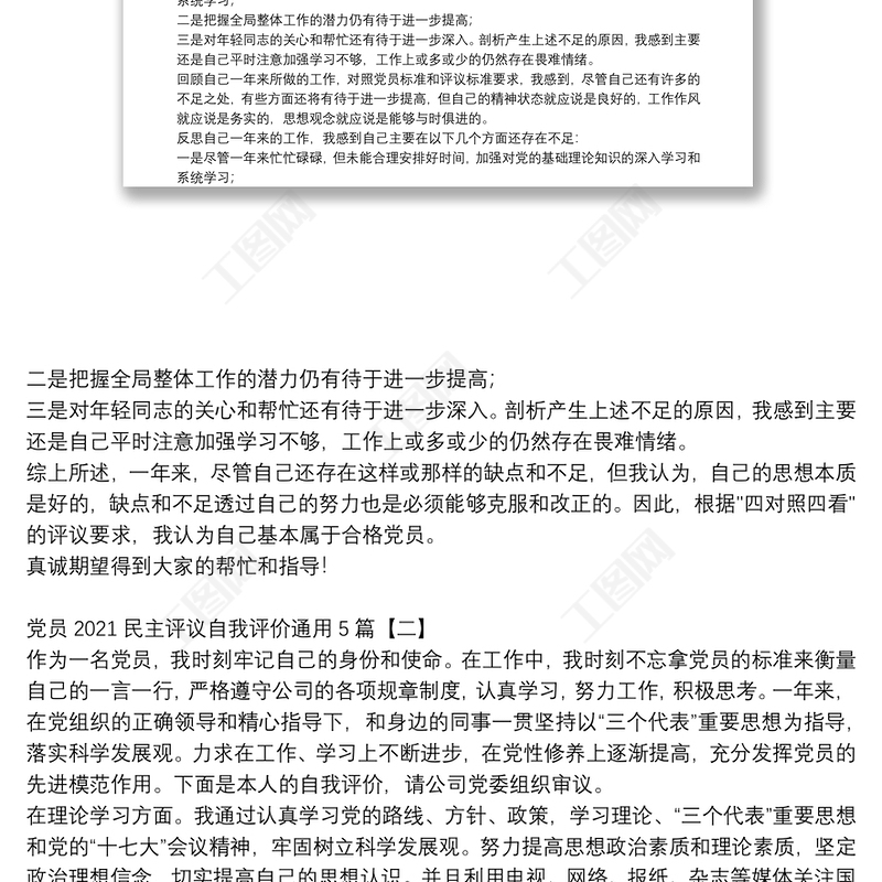 工圖網(wǎng)提供黨員2021民主評(píng)議自我評(píng)價(jià)通用5篇供會(huì)員免費(fèi)下載。更多精彩黨課PPT素材,盡在工圖網(wǎng)。