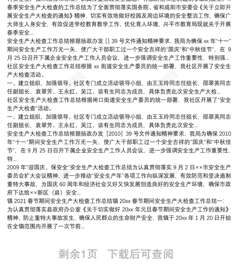 春節(jié)前安全生產(chǎn)大檢查的總結(jié)范文 Array
