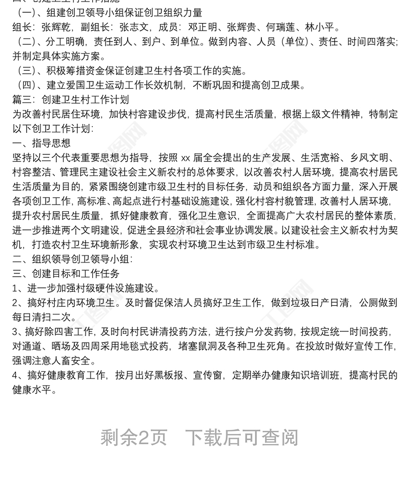 創(chuàng)建衛(wèi)生村工作計劃 Array