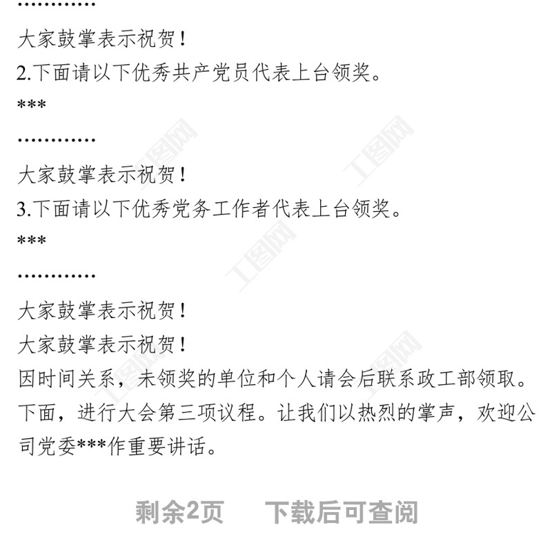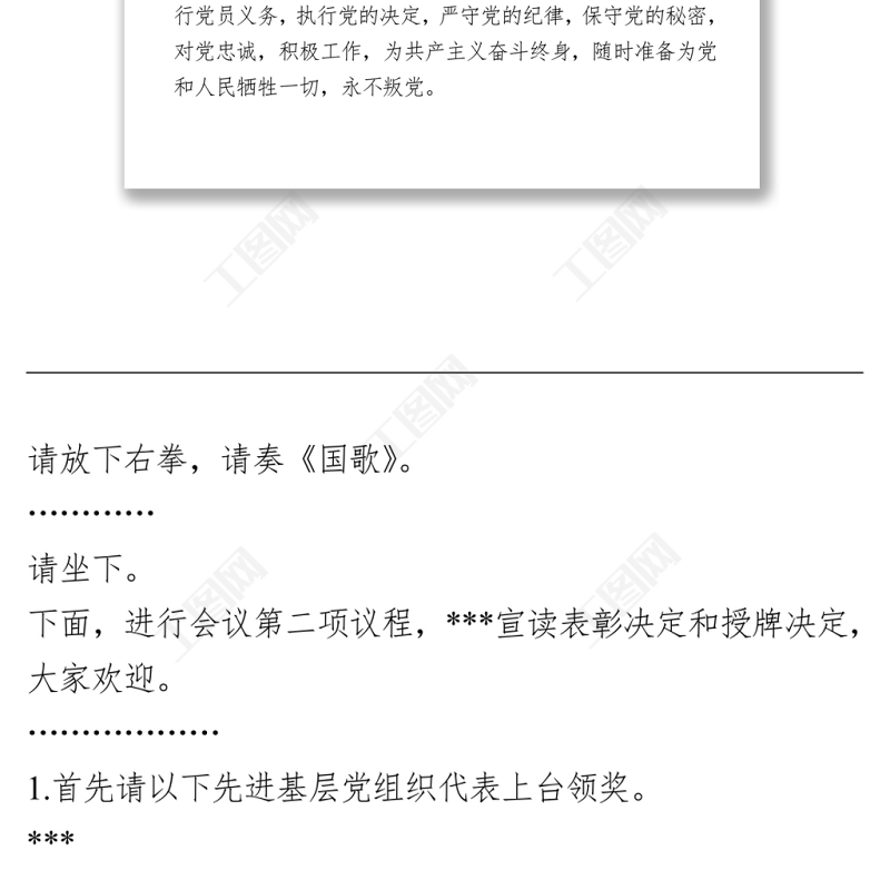 工圖網(wǎng)提供202X七一表彰大會主持詞供會員免費下載。更多精彩黨課PPT素材,盡在工圖網(wǎng)。