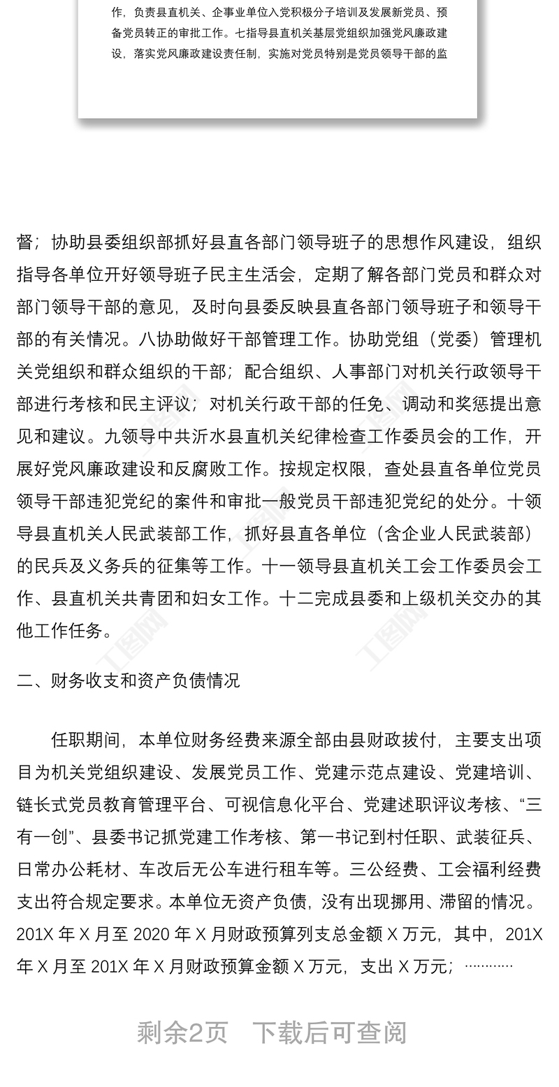 工圖網(wǎng)提供2021黨工委書記任期經(jīng)濟(jì)責(zé)任履行情況報(bào)告供會(huì)員免費(fèi)下載。更多精彩黨課PPT素材,盡在工圖網(wǎng)。