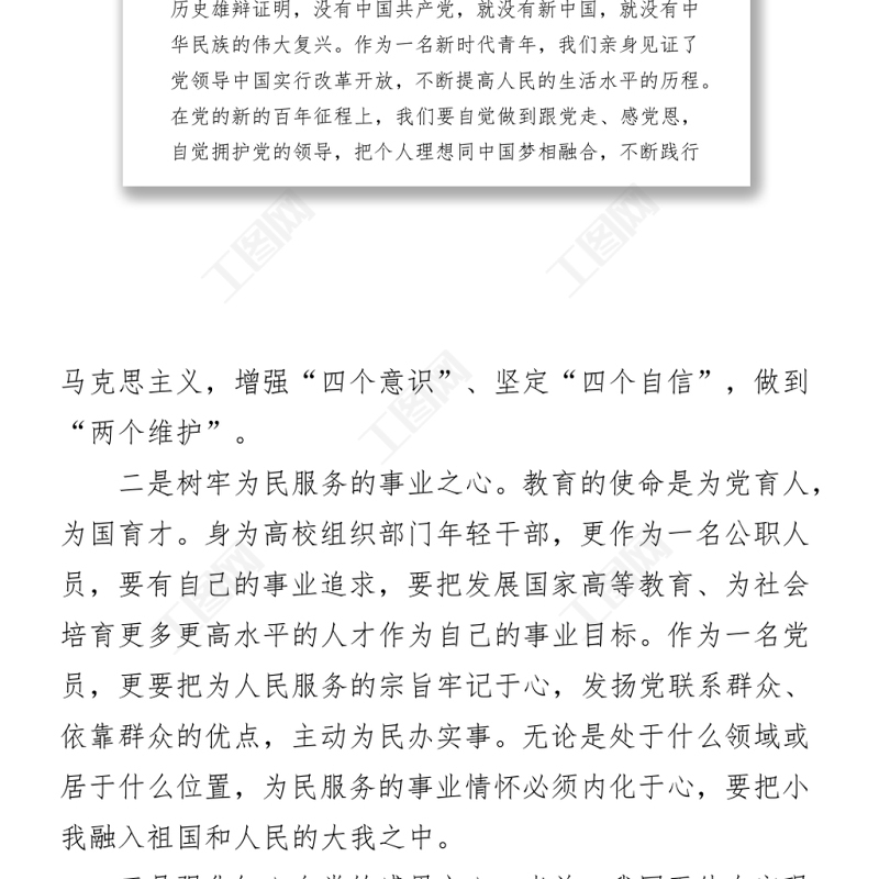工圖網(wǎng)提供2021黨史專(zhuān)題組織生活會(huì)個(gè)人剖析(青年黨員)供會(huì)員免費(fèi)下載。更多精彩黨課PPT素材,盡在工圖網(wǎng)。