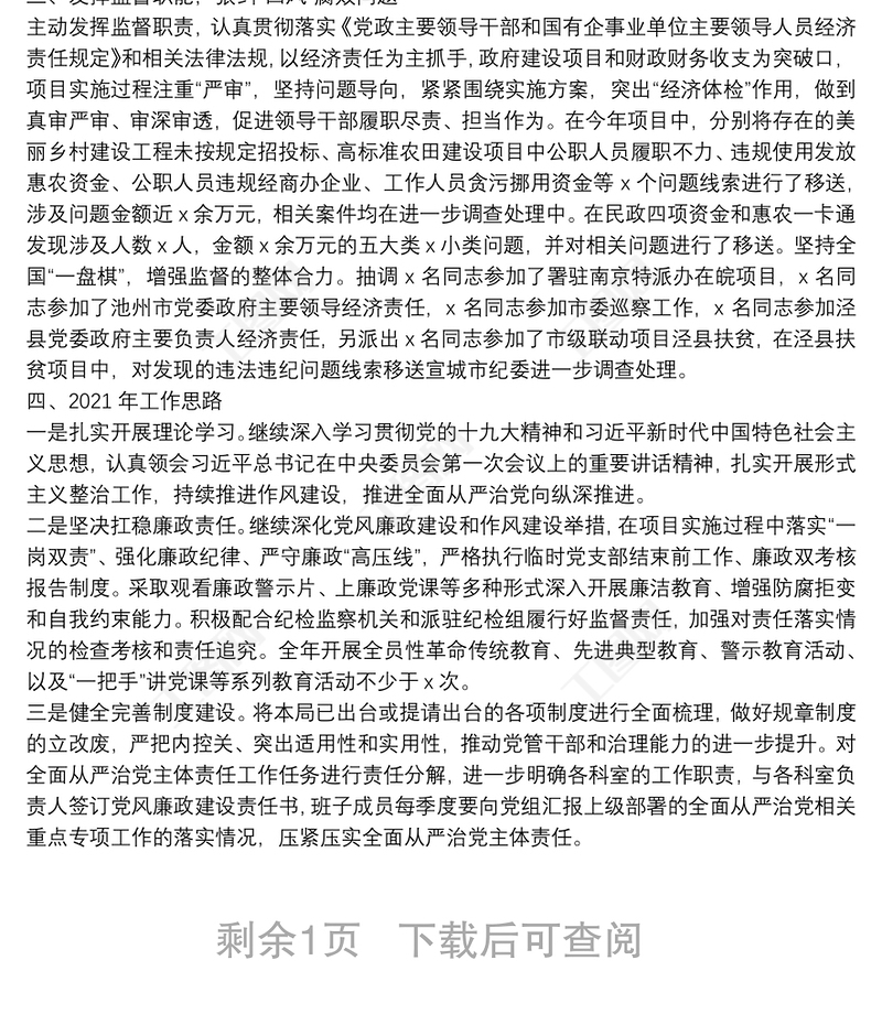 > 總結(jié) > 市局20**年度落實(shí)全面從嚴(yán)治黨主體責(zé)任工作總結(jié)及2021年工作思路.DOCX 【圖片、文字、動(dòng)畫(huà)均可編輯】