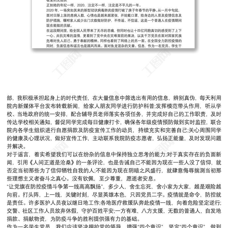 工圖網提供2020年疫情期間入黨積極分子思想匯報 2020年疫情期間思想匯報word版供會員免費下載。更多精彩黨課PPT素材,盡在工圖網。