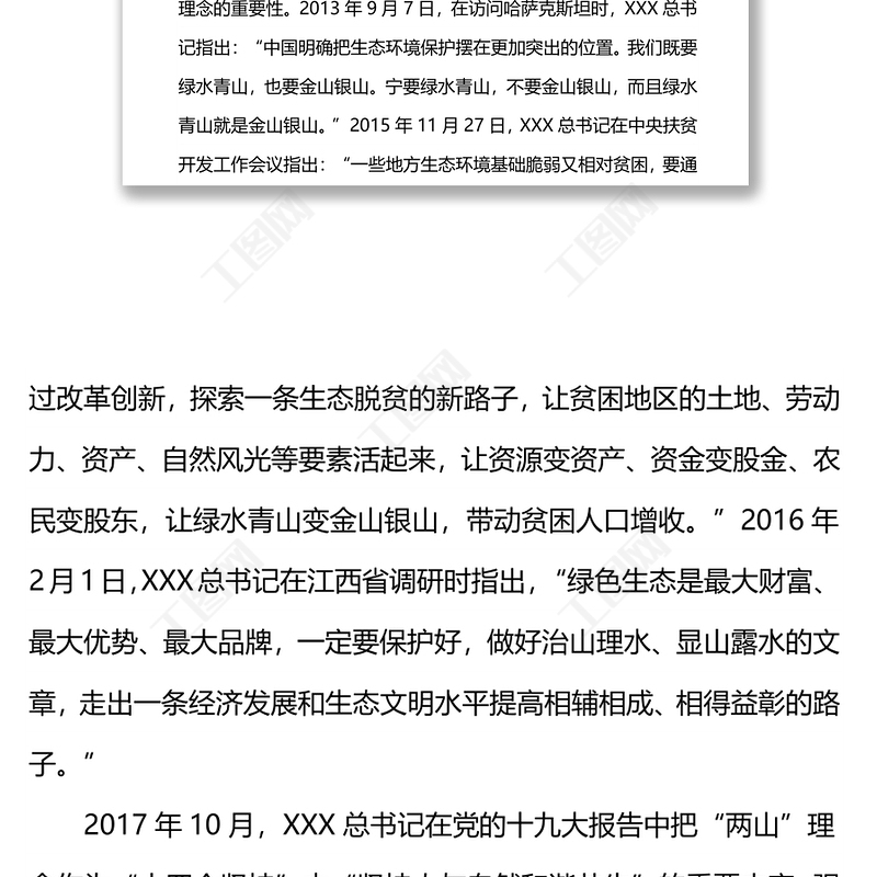 工圖網(wǎng)提供XX區(qū)建設(shè)踐行“兩山”理念試驗區(qū)講課稿供會員免費下載。更多精彩黨課PPT素材,盡在工圖網(wǎng)。