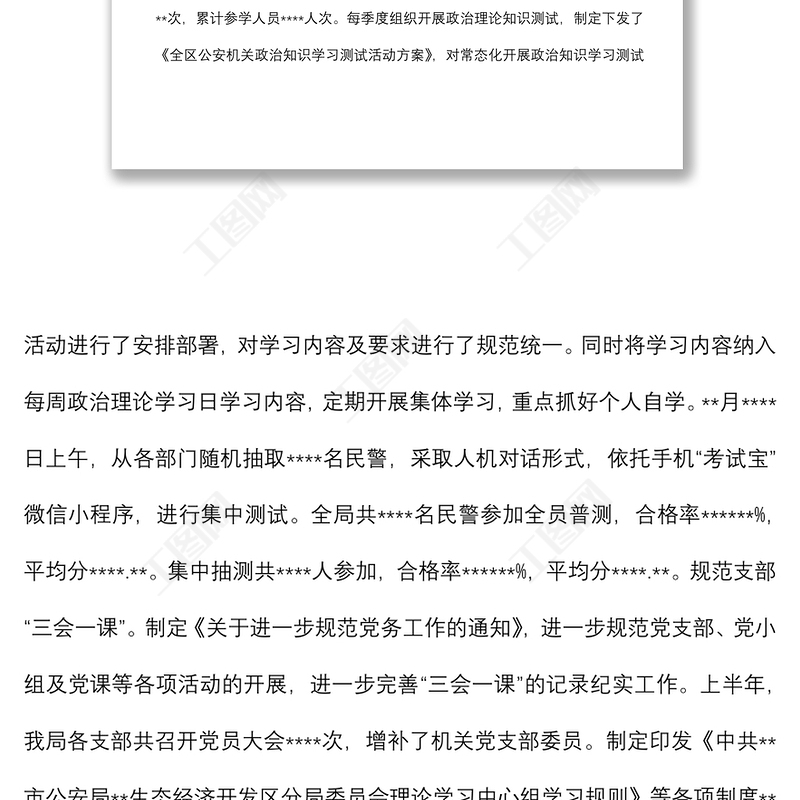 工圖網(wǎng)提供區(qū)公安分局2022年上半年全面從嚴管黨治警情況總結供會員免費下載。更多精彩黨課PPT素材,盡在工圖網(wǎng)。