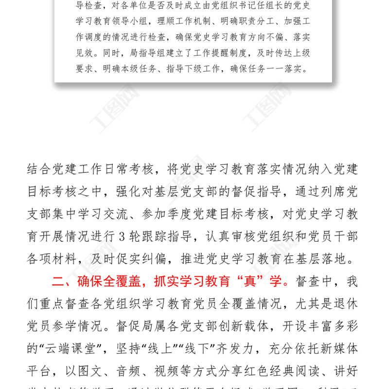 工圖網(wǎng)提供嚴(yán)督實(shí)導(dǎo)打基礎(chǔ) 學(xué)史力行見成效——黨史學(xué)習(xí)教育巡回指導(dǎo)經(jīng)驗(yàn)材料y供會(huì)員免費(fèi)下載。更多精彩黨課PPT素材,盡在工圖網(wǎng)。