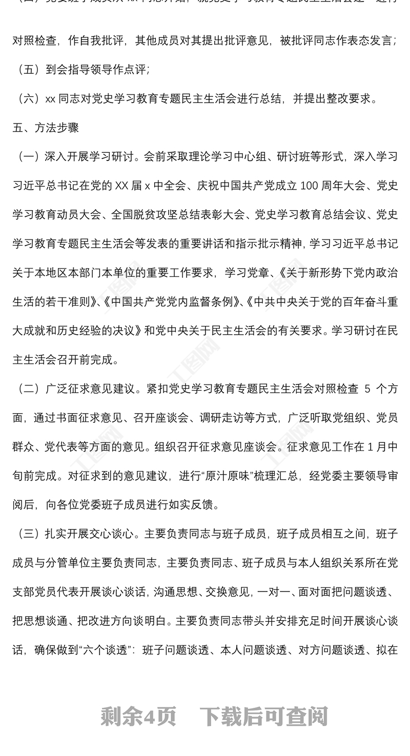 工圖網(wǎng)提供國(guó)企集團(tuán)公司黨委班子2021年黨史學(xué)習(xí)教育專題民主生活會(huì)方案供會(huì)員免費(fèi)下載。更多精彩黨課PPT素材,盡在工圖網(wǎng)。