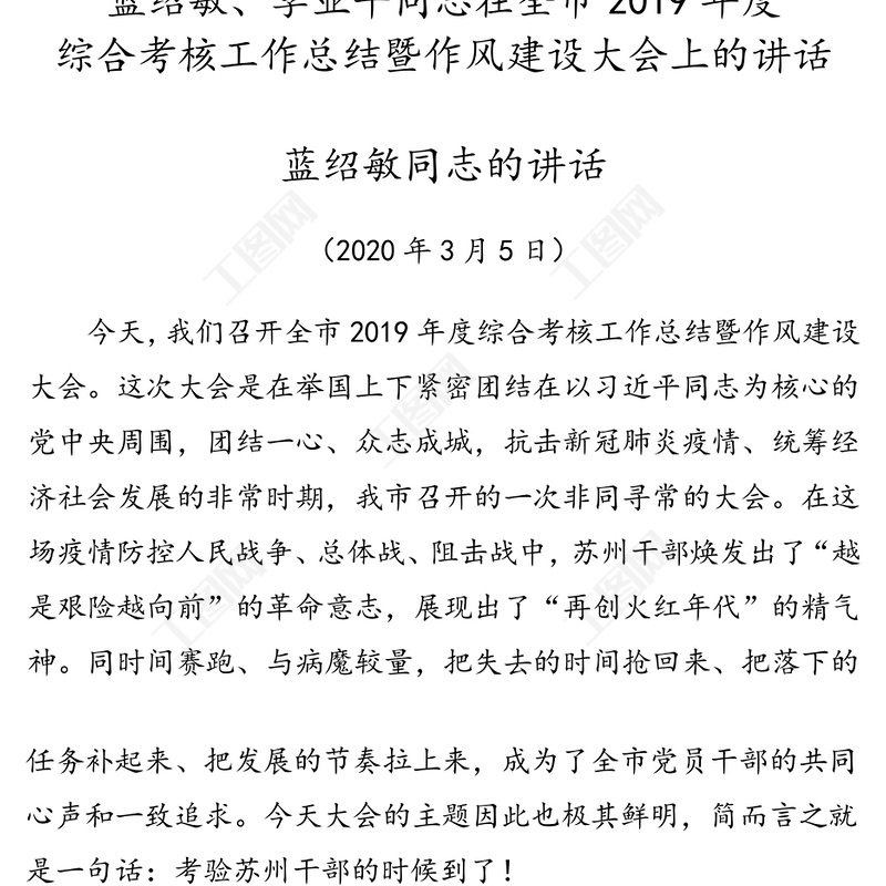 > 領(lǐng)導(dǎo)講話 > 藍(lán)紹敏李亞平同志在全市2019年度綜合考核工作總結(jié)暨作風(fēng)建設(shè)大會(huì)上的講話.DOCX 【圖片、文字、動(dòng)畫均可編輯】