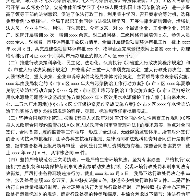 生態(tài)環(huán)境局關(guān)于20xx年法治政府建設(shè)情況及特色亮點(diǎn)工作的總結(jié)