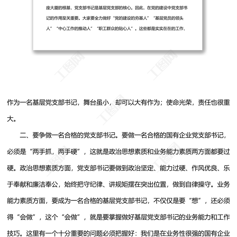 工圖網(wǎng)提供XX集團(tuán)黨委基層黨支部書記座談暨基礎(chǔ)黨建工作培訓(xùn)會(huì)議上的講話供會(huì)員免費(fèi)下載。更多精彩黨課PPT素材,盡在工圖網(wǎng)。