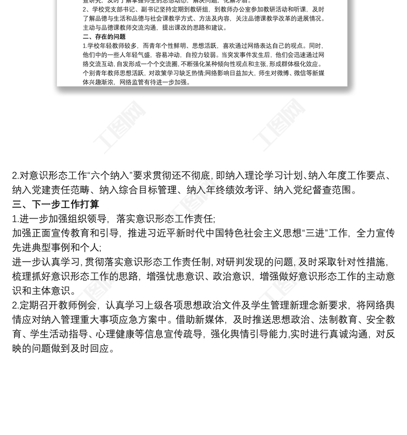 工圖網(wǎng)提供學(xué)校黨支部關(guān)于20xx年意識形態(tài)領(lǐng)域研判報告供會員免費下載。更多精彩黨課PPT素材,盡在工圖網(wǎng)。