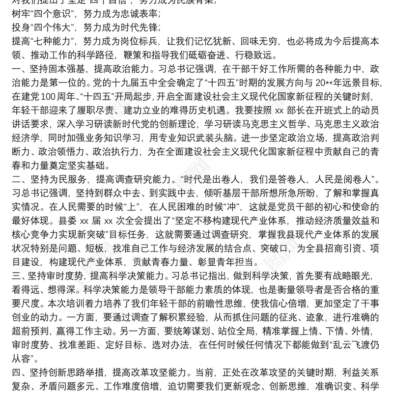 處級干部培訓(xùn)班表態(tài)發(fā)言范文五篇
