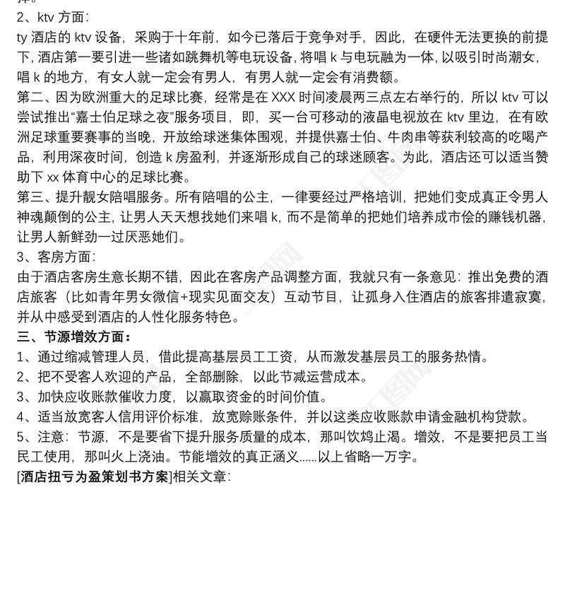 酒店扭虧為盈的方案_酒店扭虧為盈策劃書方案 Array