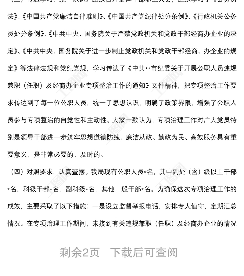 > 報告 > 關(guān)于開展2022年公職人員違規(guī)兼職(任職)及經(jīng)商辦企業(yè)專項(xiàng)整治工作情況的報告.DOCX 【圖片、文字、動畫均可編輯】