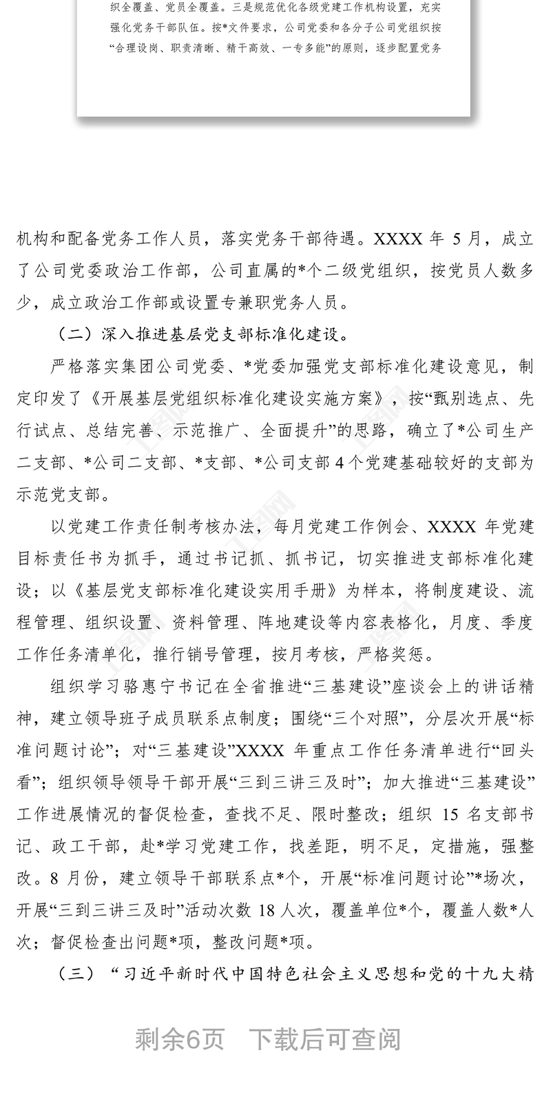 2021黨支部黨史學(xué)習(xí)教育專題組織生活會查擺問題的整改落實情況2021學(xué)黨史落實情況2021黨史學(xué)習(xí)專題組織生活會查擺問題整改落實情況報告2021支部書記述職評議查擺問題整改落實情況報告2021建黨100周年落實情況報告2021建黨100周年落實情況2021脫貧攻堅落實情況報告2021黨史學(xué)習(xí)教育整改落實情況匯報2021年個人全面從嚴治黨主體責(zé)任落實情況報告2021全面從嚴治黨一崗雙責(zé)責(zé)任落實情況報告2023集團公司新時代中國特色社會主義思想工作匯報材料2023集團公司新時代中國特色社會主義思想工作情況匯報2023集團公司新時代中國特色社會主義思想專題黨課講稿2023集團公司新時代中國特色社會主義思想發(fā)言提綱2023黨建文化墻落實情況總結(jié)
