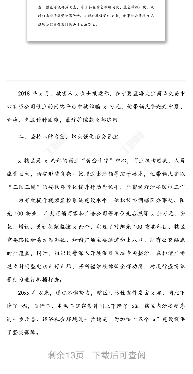 工圖網(wǎng)提供4篇個(gè)人事跡公安局民警平安建設(shè)先進(jìn)個(gè)人事跡材料范文供會(huì)員免費(fèi)下載。更多精彩黨課PPT素材,盡在工圖網(wǎng)。