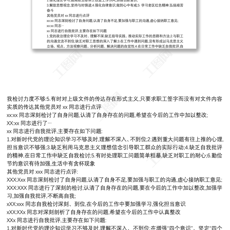 2021【300條5個方面】民主生活會、組織生活會批評意見(300條)包含