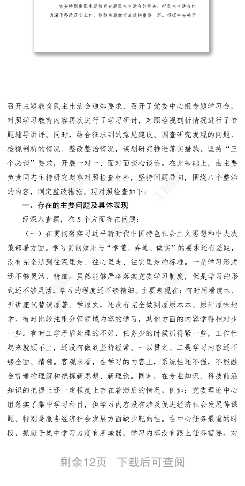 工圖網(wǎng)提供2021“不忘初心、牢記使命”主題教育 黨委班子專題民主生活會(huì)對(duì)照檢查材料供會(huì)員免費(fèi)下載。更多精彩黨課PPT素材,盡在工圖網(wǎng)。